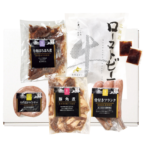 - 三國推奨牛肉ほろほろ煮/220g、三國推奨うずまきウインナー/120g、三國推奨豚角煮/190g、三國推奨骨付きフランク/(80g×3)、三國推奨北海道産牛ローストビーフ/400g、ローストビーフのタレ/2袋